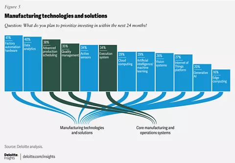 In a survey conducted by Deloitte, 600 manufacturers were asked “What do you plan to prioritize investing in within the next 24 months?”